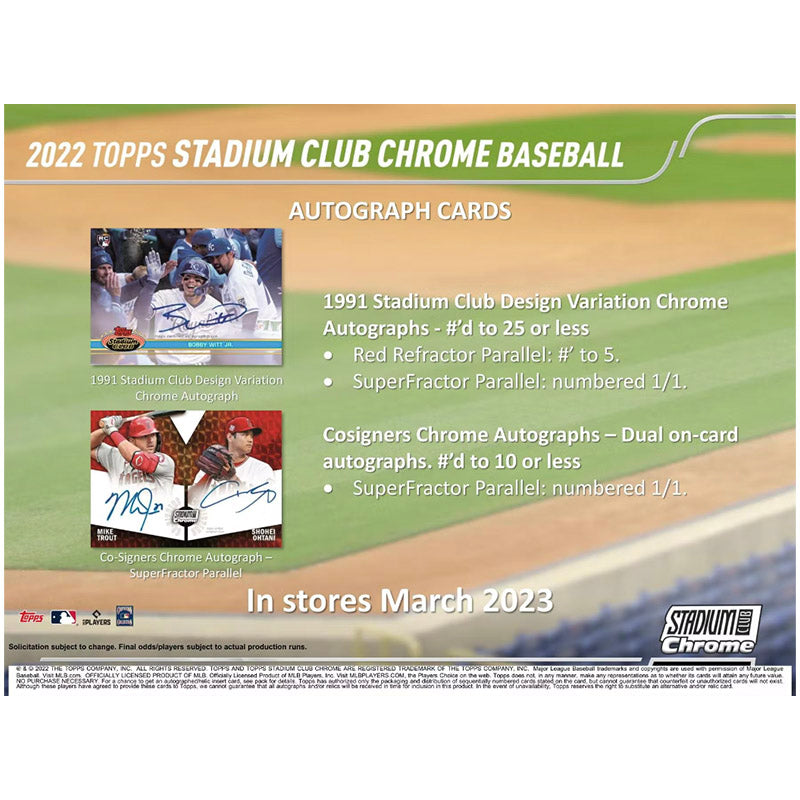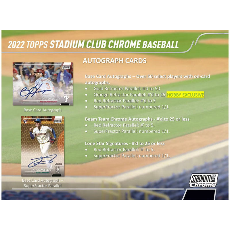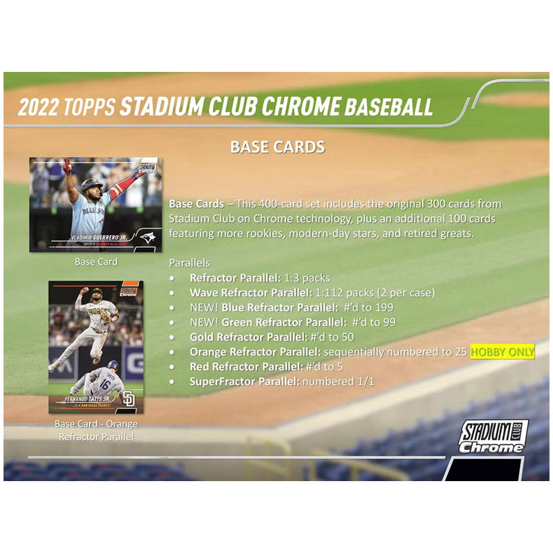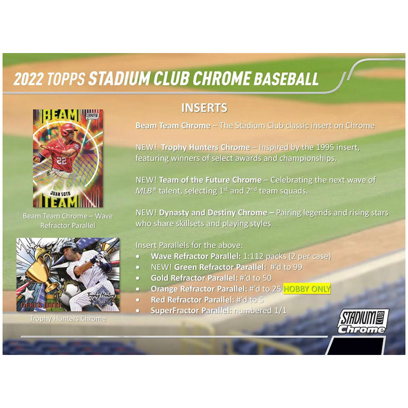 - In 2022 Topps Stadium Club Chrome Baseball Hobby, some of the most stunning cards in the hobby receive the Chrome treatment.