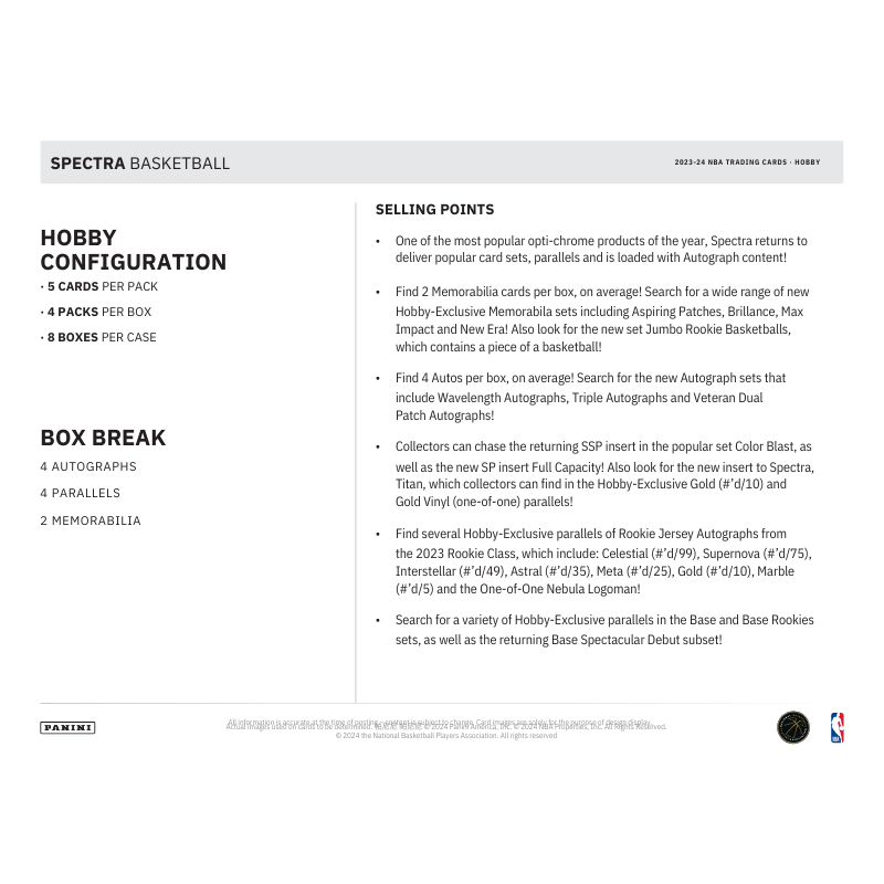 Join the winning team with the 2023/24 Panini Spectra Basketball Hobby 8 Box Case from Giant. Enjoy competitive prices, GOAT-level service, and FREE shipping!