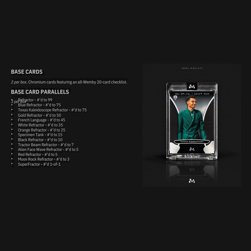 - Chromium cards featuring an all-Wemby 20-card checklist.
