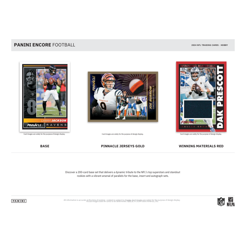 - Introducing 2024 Encore Football, a dynamic program, making its debut this season! Collectors can look forward to discovering card sets, featuring the top Superstars, Legends, and Rookies of the NFL.