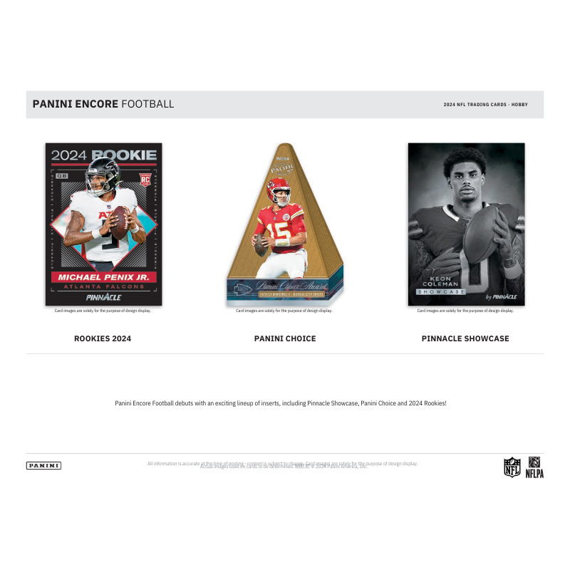 - Panini Encore Football debuts with an exciting lineup of inserts, including Pinnacle Showcase, Panini Choice and 2024 Rookies!